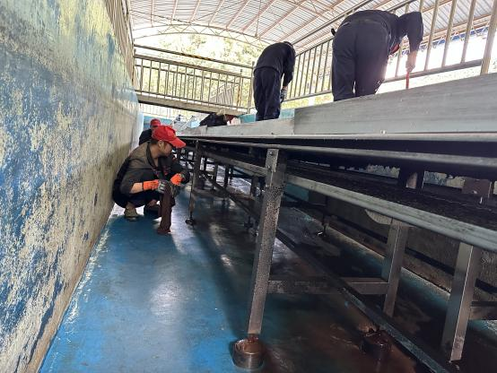 維護現(xiàn)場,在分公司負責(zé)人的帶領(lǐng)下,分公司職工利用短暫的停產(chǎn)間隙,加班加點對水相區(qū)域、一號線生產(chǎn)現(xiàn)場等關(guān)鍵設(shè)備設(shè)施進行翻新、維護和保養(yǎng),為完成本年度后續(xù)生產(chǎn)任務(wù)做好準備。